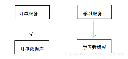 用户支付完成会将支付状态及订单状态保存在订单数据库中,由订单服务去维护订单数据库。而学生选课信息在学习中心数据库,由学习服务去维护学习中心数据库的信息。下图是系统结构图: