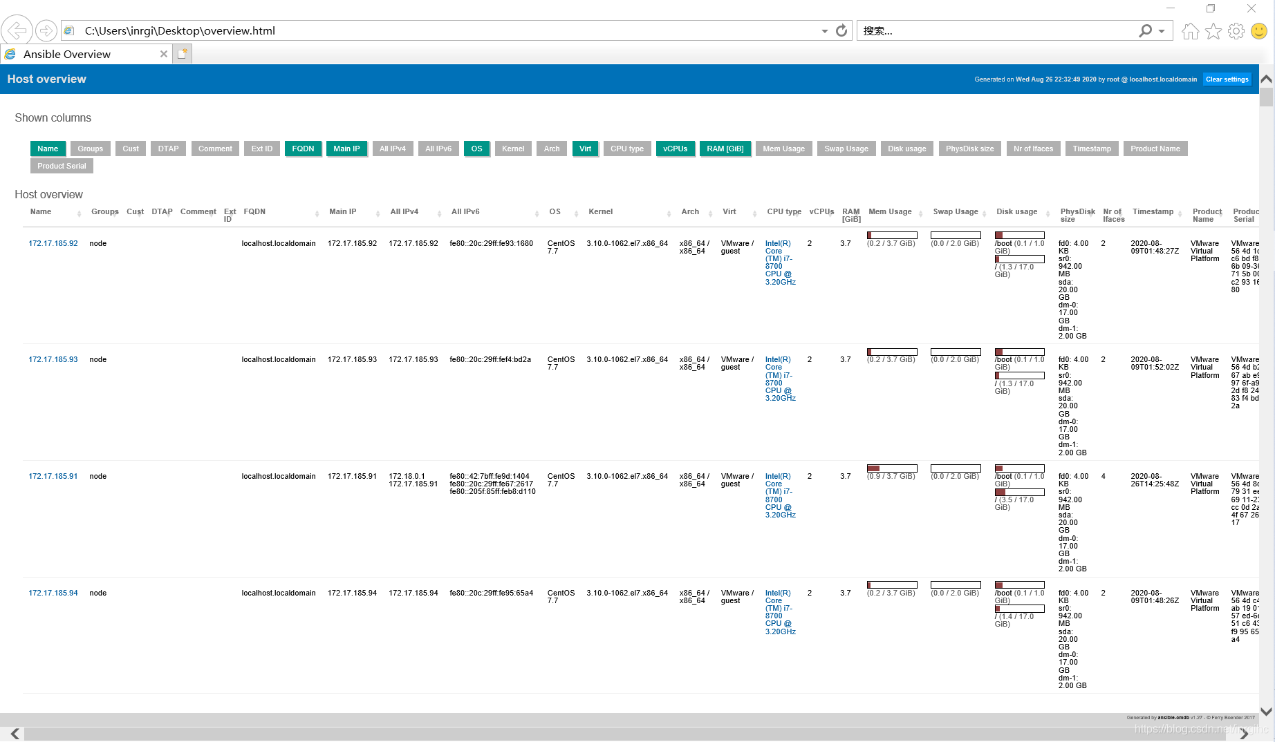 ansible-cmdb out/ > overview.html 用IE等浏览器打开overview.html文件看看吧: