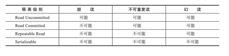 下面的表格是ANSI SQL标准定义的事务隔离级别与读现象的关系: