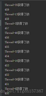 例子中使用50个线程模拟秒杀一个商品,使用–运算符来实现商品减少,从结果有序性就可以看出是否为加锁状态。