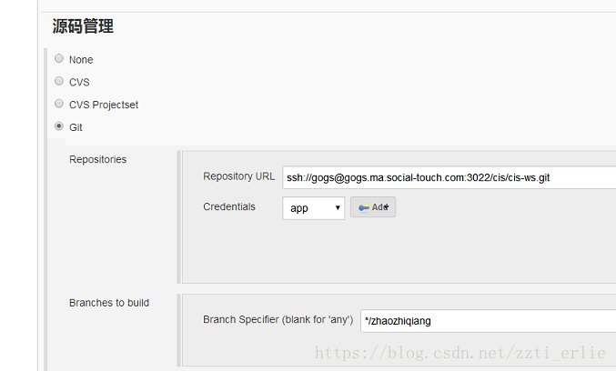 指定git地址和分支