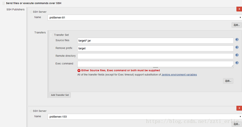 echo ${TEST_KEY} 将jar包通过SSH同时部署到多个服务器上(如图,prdServer-81和prdServer-133是2个服务器)