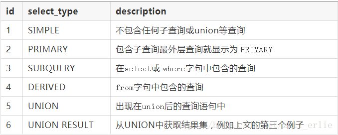 id select_type description