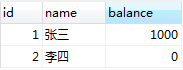 | T2 | set session transaction isolation level repeatable read; start transaction; update account set balance = balance + 1000 where id = 2; select * from account where id = 2; commit; 查询余额输出1000 | |
