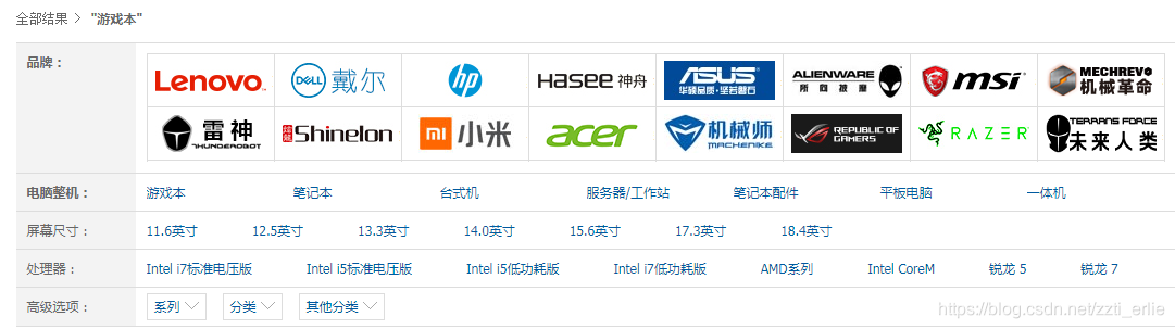 每个商品入库的时候即会建立他的静态标签列表如,品牌,尺寸,处理器,内存
