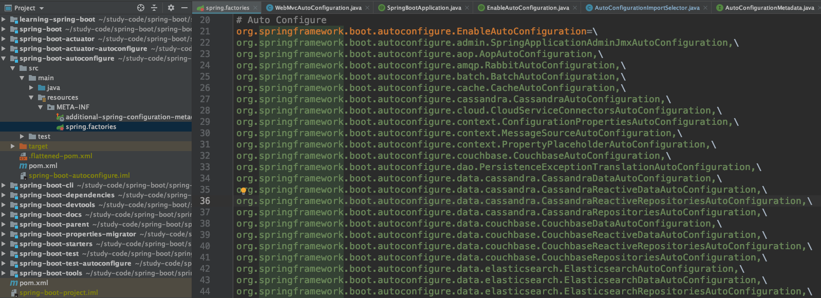 我们可以在spring-boot-autoconfigure模块中的spring.factories文件中看到配置了一大堆配置类