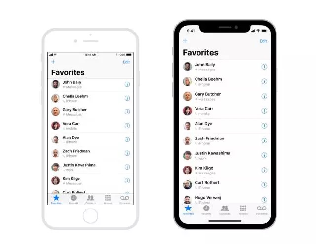 - 新的状态栏。由于屏幕顶部的传感器,新的状态栏被分为两部分。如果你的 UI 在这块区域中有特别的设计(以前是 20pt 高,现在 44pt 高),那么你可能需要更新一下设计,因为 iPhone X 上这块空间的高度比以前更高了。确保顶部状态栏区域的设计高度可变。而当用户在打电话或者在使用导航 App 时,和其他 iPhone 一样,顶部的状态栏高度就不会变。