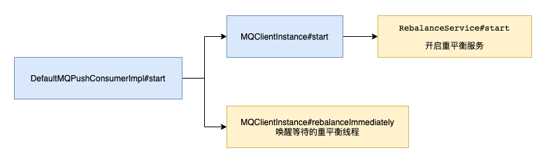 当调用DefaultMQPushConsumerImpl#start方法时会启动RebalanceService,这个服务会每隔20s执行一次重平衡,因为头一次拉取消息并不需要再等20s,所以当头一次阻塞等待时,后面的方法会立即唤醒阻塞的线程,开始执行拉取,后续就是每隔20s执行一次重平衡。