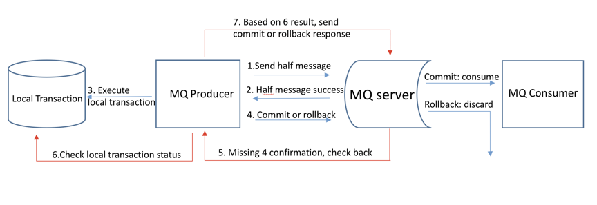 - 在断网或者应用重启等特殊情况下,步骤4提交的2次确认有可能没有到达mq server,经过固定时间后mq会对该消息发起回查