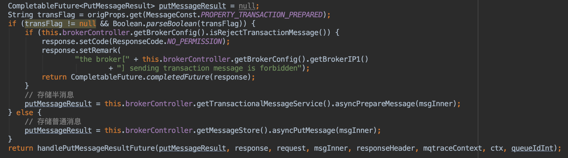 Integer status = localTrans.get(msg.getTransactionId());