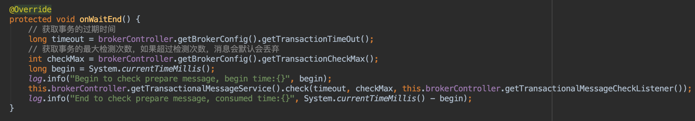TransactionalMessageCheckService#onWaitEnd