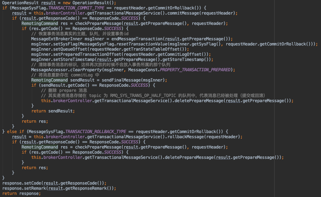 提交事务消息和回滚事务消息的逻辑差不多,先说提交事务消息的逻辑