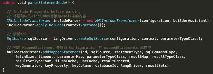org.apache.ibatis.builder.xml.XMLStatementBuilder#parseStatementNode
