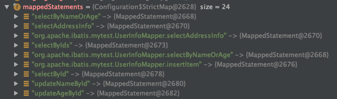最后把解析完成的sql封装成MappedStatement,并存到Configuration中,后续根据id就可以直接取到MappedStatement,然后执行sql