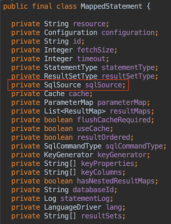 MappedStatement中有一个很重要的属性SqlSource,这是解析完sql后封装的一个对象,下节我们详细分析一下