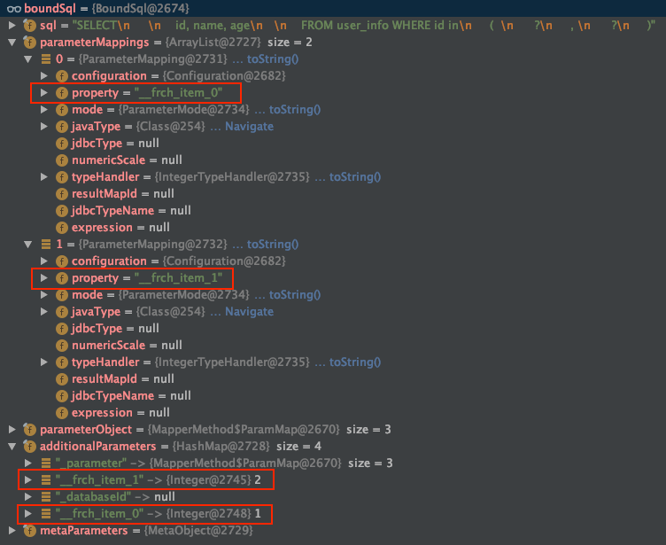 一般我们传入的是数组,list对象时,需要用foreache遍历,会把参数的映射关系放在additionalParameters,而其他情况则会将参数的映射关系放在parameterObject中