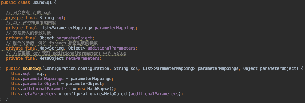 从图中你可以看到BoundSql中的sql属性只会含有?,因此只需要给对应的位置设值即可