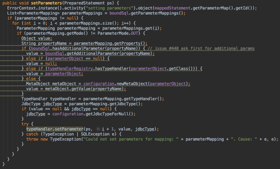 org.apache.ibatis.scripting.defaults.DefaultParameterHandler#setParameters