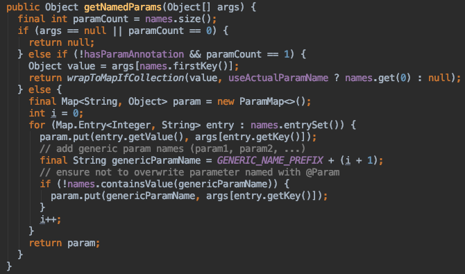 // 没有@Param注解,并且只有一个入参(去掉了RowBounds和ResultHandler哈),则返回对应的入参即可