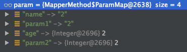 接着就是最后一种情况,用了@Param注解或者有多个参数,封装成map返回,map的key为参数的名字,map的value为参数对应的值