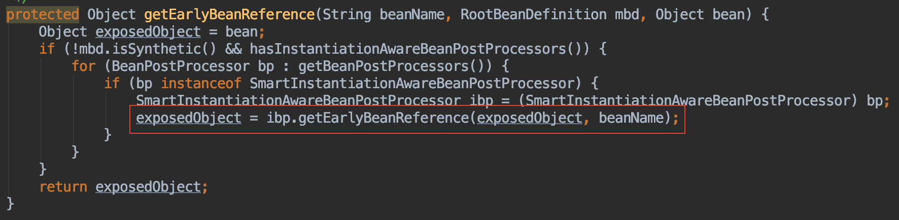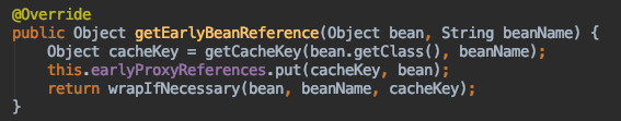 getEarlyBeanReference方法提前进行代理,为了防止后面再次进行代理,需要用earlyProxyReferences记录一下,这个Bean已经被代理过了,不用再代理了