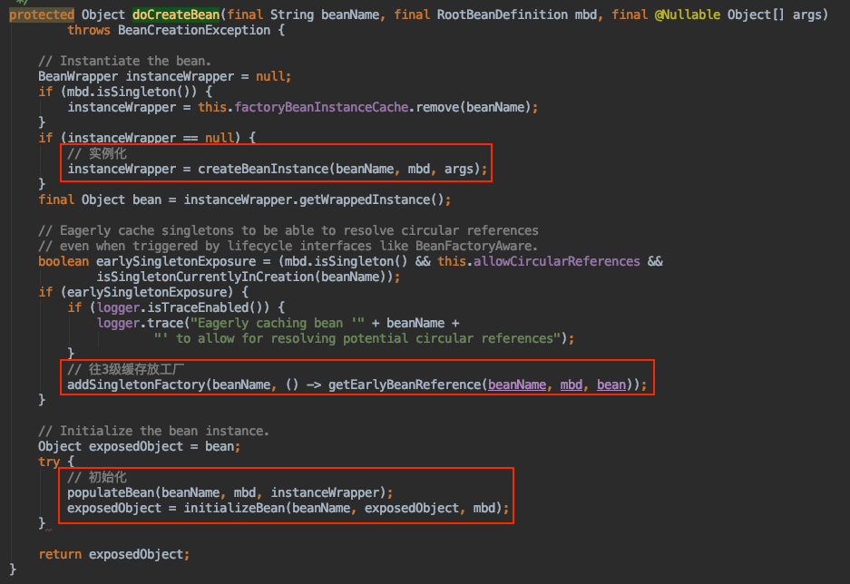AbstractAutowireCapableBeanFactory#doCreateBean(删除了部分代码哈)