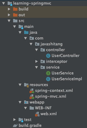 我们基于xml方式写一个spring mvc应用,基于这个应用来分析,项目结构如下