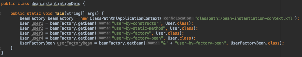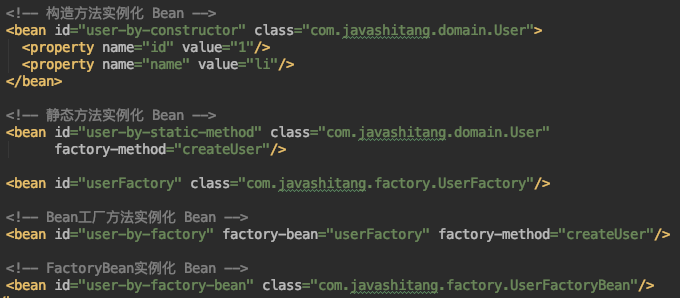 - 静态方法实例化 Bean