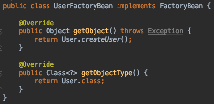 可以看到当我们用FactoryBean实现类的名字来获取Bean时,获取到的并不是FactoryBean,而是调用FactoryBean#getObject方法创建出来的对象。