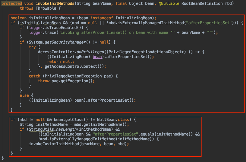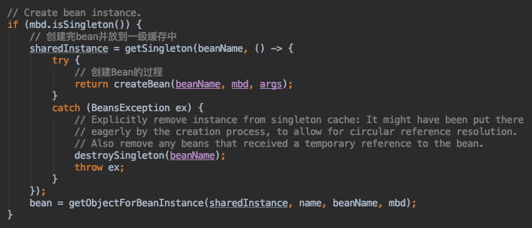 这个方法后面还有回调SmartInitializingSingleton#afterSingletonsInstantiated方法,这其实是Bean生命周期中的初始化完成阶段,我们下节详细分析
