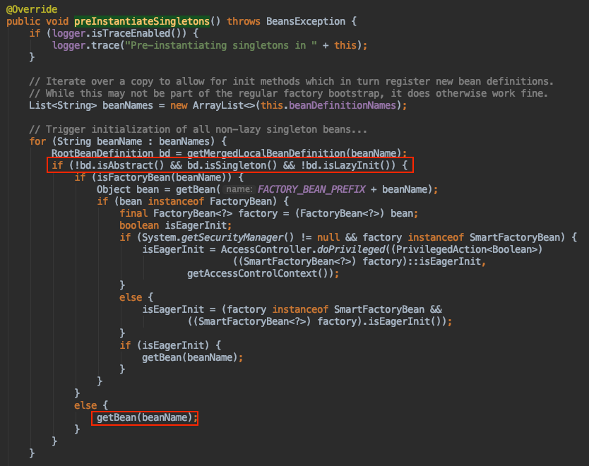 DefaultListableBeanFactory#preInstantiateSingletons