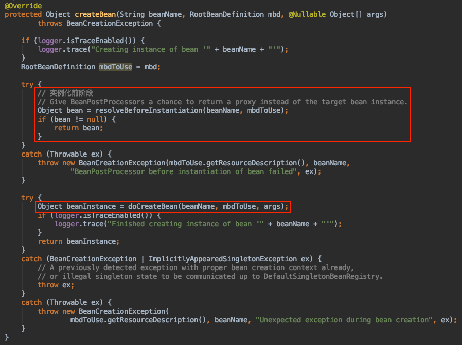 AbstractAutowireCapableBeanFactory#createBean(删除部分代码)