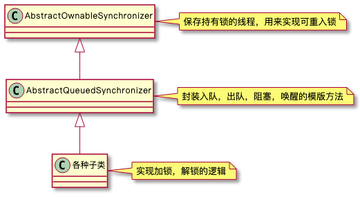 为了保存持有锁的线程,用来实现可重入锁,AbstractQueuedSynchronizer继承了AbstractOwnableSynchronizer类,这个类只用来保存获取锁的线程,没有其他逻辑