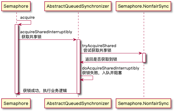 剩余的资源数小于0则进入同步队列。进行阻塞,否则执行业务逻辑