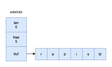 sdshdr5并没有存在alloc的值,因此它不会进行空间预分配和惰性空间空间释放,长度变动每次都重新申请内存
