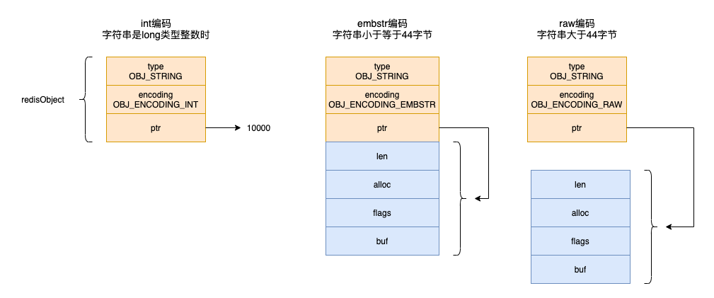 - flags:标识当前结构体的类型,低3位用作标识位,高5位预留(3个字节能保存的种类数为2的3次方即8,sds总共的种类数为5,所以用低三位就能用标识种类)