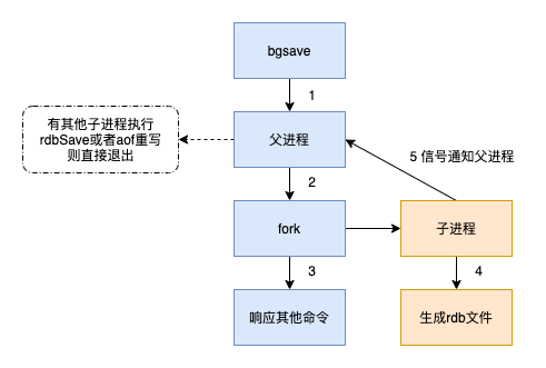 - 没有的话fork产生子进程,让子进程生成rdb文件