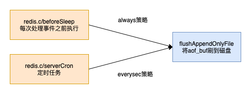 而always策略则和我们想的不太一样,他并不是在每次处理完命令就进行持久化,而是在每次处理事件之前进行持久化,因为事件处理的时间间隔很短,所以差别不大