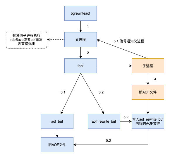 - 父进程将aof_rewite_buf中的内容写入新的aof文件,并替换原来的aof文件