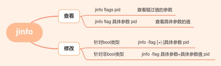 使用jps命令的-v参数可以查看虚拟机启动时显式指定的参数列表,但如果想知道未被显式指定的参数的系统默认值,除了去找资料外,就只能使用jinfo的-flag选项进行查询了(如果只限于JDK 1.6或以上版本的话,使用java -XX:+PrintFlagsFinal查看参数默认值也是一个很好的选择)