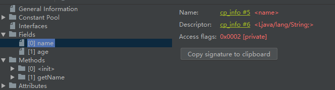 可以看到字节码中包含了3个方法,getName方法我们知道,<init>和<clinit>方法里面执行了哪些逻辑?