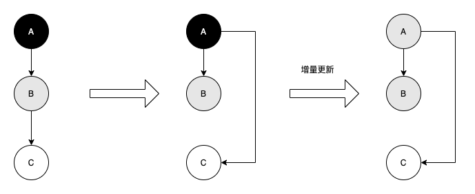 增量更新要破坏的是第一个条件, 当黑色对象插入新的指向白色对象的引用关系时, 就将这个新插入的引用记录下来, 等并发扫描结束之后, 再将这些记录过的引用关系中的黑色对象为根, 重新扫描一次。 这可以简化理解为, 黑色对象一旦新插入了指向白色对象的引用之后, 它就变回灰色对象了