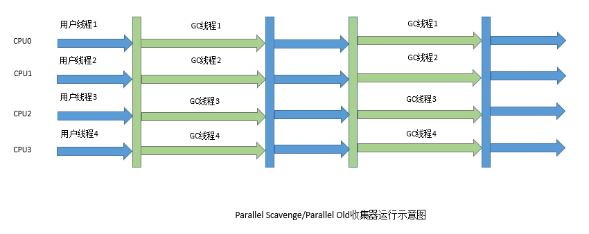 | Parallel Scavenge吞吐量优先收集器 | 新生代,复制算法 | 并行的多线程收集器 | 类似ParNew,更加关注吞吐量,达到一个可控制的吞吐量 | 本身是Server级别多CPU机器上的默认GC方式,主要适合后台运算不需要太多交互的任务 |