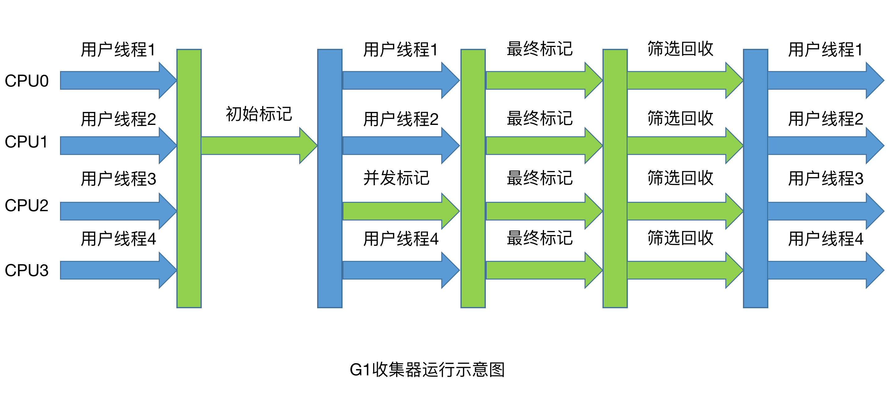 | G1 | 跨新生代和老年代;标记整理 | 并行与并发收集器 | JDK1.7才正式引入,采用分区回收的思维,基本不牺牲吞吐量的前提下完成低停顿的内存回收;可预测的停顿是其最大的优势 |