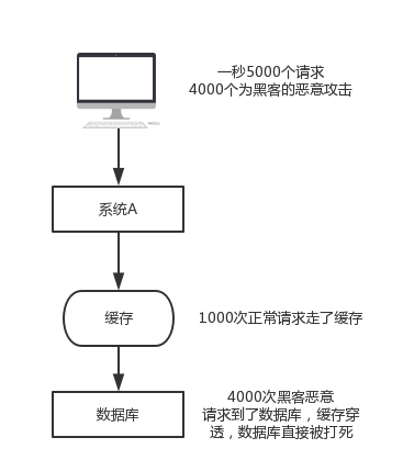 如果黑客每秒一直发送这4000个请求,缓存就不起作用,数据库也很快被打死。