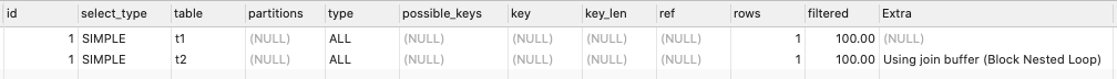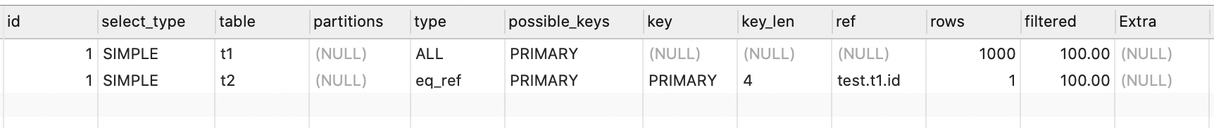 explain select * from t1 inner join t2 on t1.id = t2.id