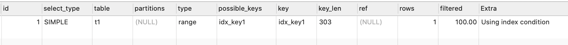 explain select * from t1 where key1 > 'a' and key1 < 'b'