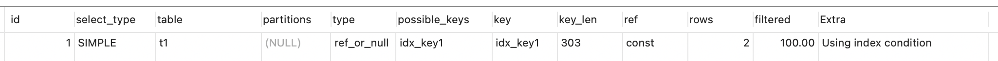 ref_or_null:普通二级索引与常量进行等值匹配,索引值可以为null时