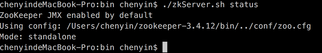 执行结果如下,其中Mode:standalone标识当前集群只有一台server,如果是集群部署,Mode有可能是Leader或者Follower