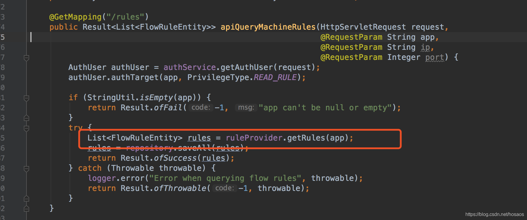 public List<FlowRuleEntity> getRules(String appName) throws Exception {